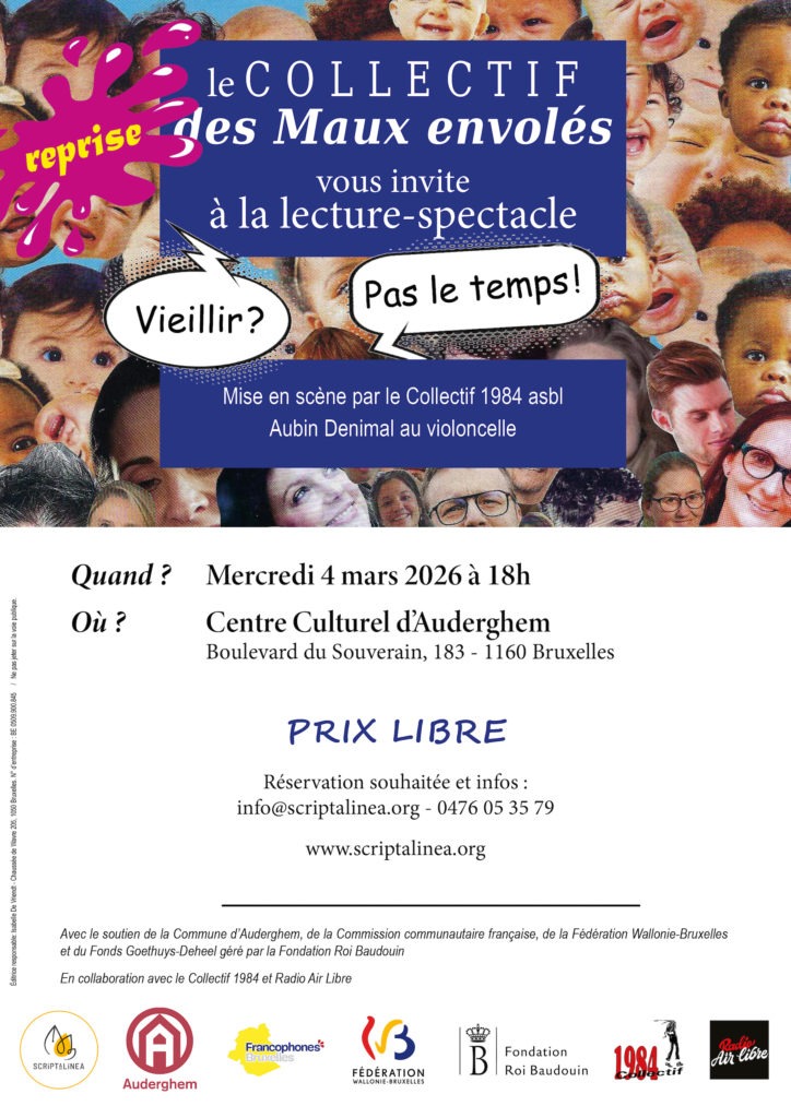 Accompagné par plusieurs habitant·e·s d’Auderghem et d’ailleurs, dans cette aventure portée par Max Lebras, du Collectif 1984, et la musique d’Aubin Denimal, qui propose quelques accents de la suite pour violoncelle de Max Reger, le Collectif des Maux envolés se délecte de ces moments où il questionne le regard posé sur le vieillissement…